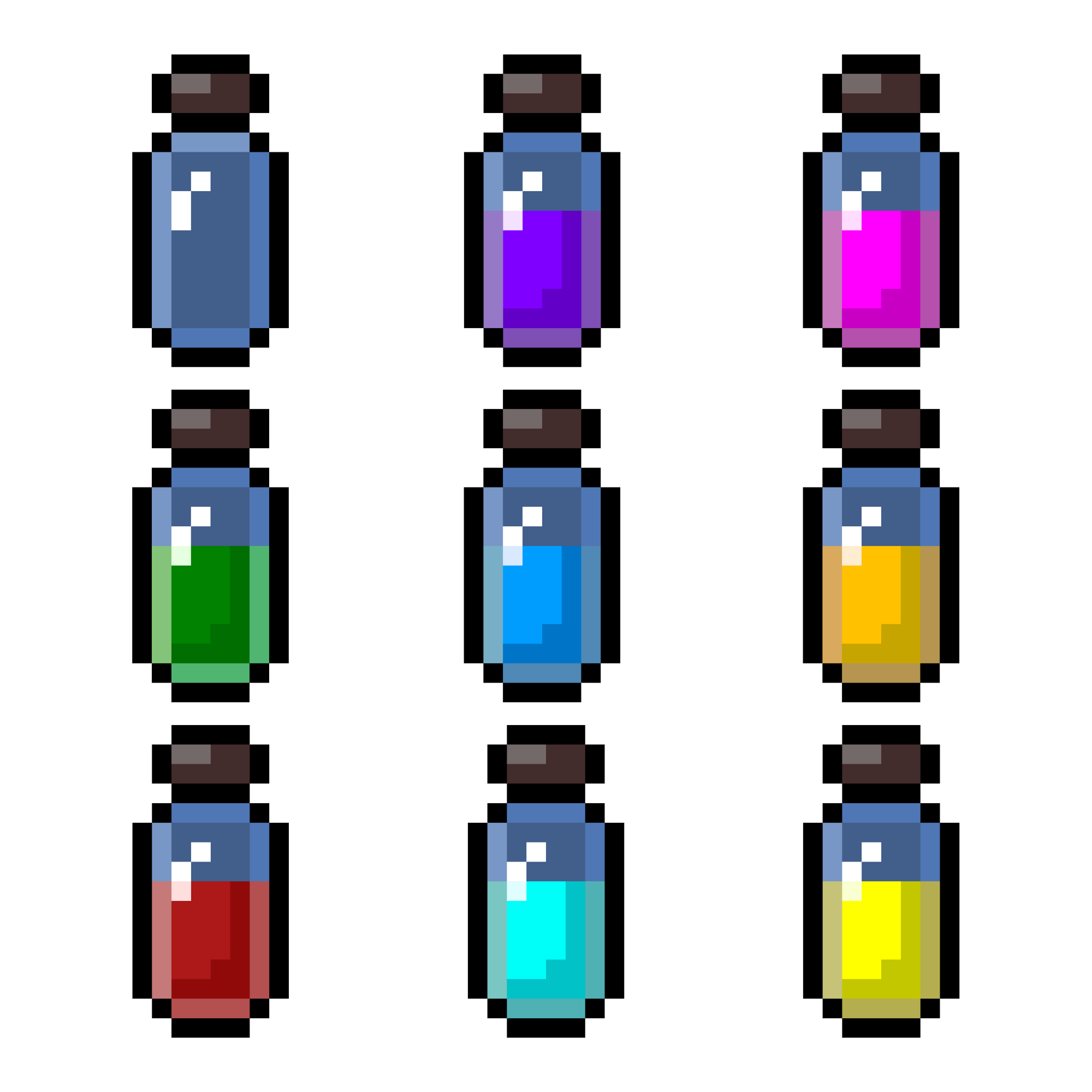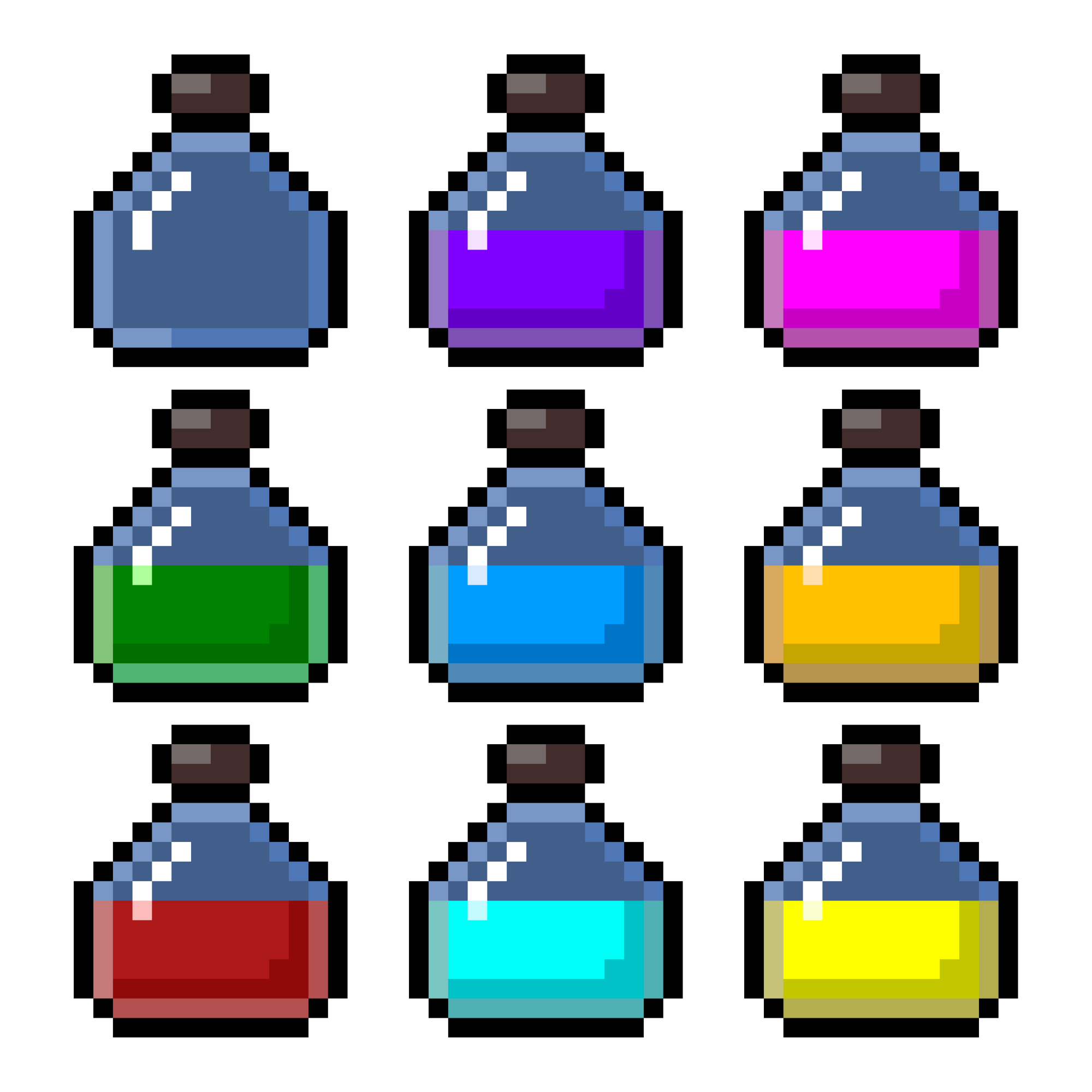 This free pack includes 4 unique potion designs in 9 vibrant colors, all in a clean 16x16 pixel format. Whether you need health, mana, or mysterious elixirs, these potions are ready to drop straight into your game.